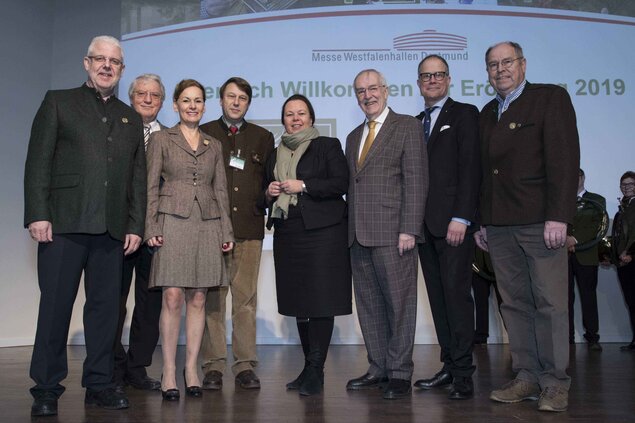 Auch aus Nordrhein-Westfalen kam hoher Besuch. Ulla Heinen-Esser, Ministerin für Umwelt, Landwirtschaft, Natur- und Verbraucherschutz des Landes Nordrhein-Westfalen hielt auf der Eröffnungsfeier eine Festrede. Sie zeigte sich hinsichtlich des neuen Jagdgesetz-Entwurfes sehr zufrieden. Das Gesetz soll rechtzeitig zum neuen Jagdjahr in Kraft treten.